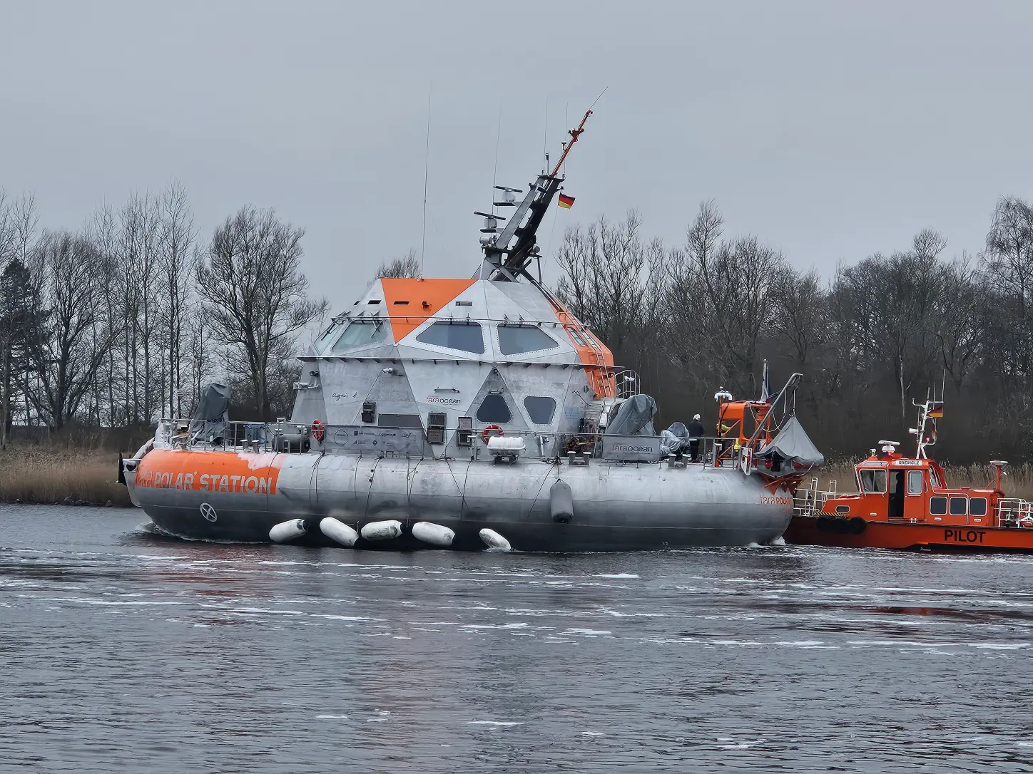 Heute war ein interessantes Schiff im NOK. Ich habe gerade eben erst davon erfahren, aber im Web gibt es Bilder: Die 'Tara Polar Station'. Gerade ist sie südluch von Burg. Sie ist noch recht neu, Baujahr 2025.